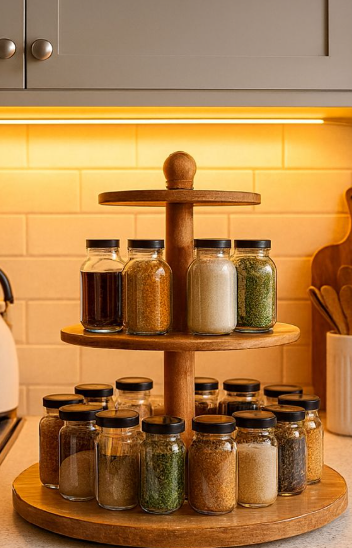 2-Tier Wooden Rotating Masala Stand – Kitchen Spice Organizer