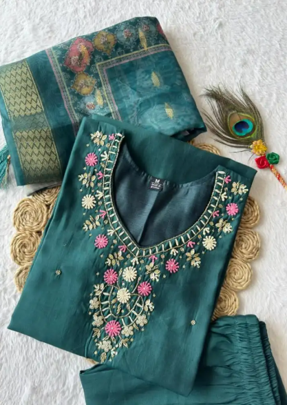 Elegant Teal Green Embroidered Kurta Set with Dupatta