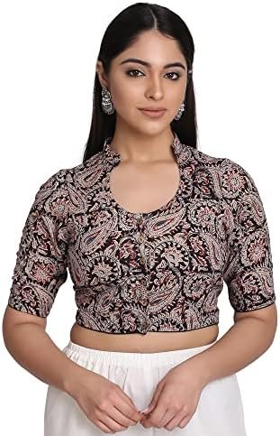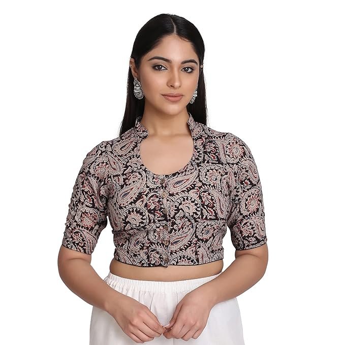Aa stylish printed blouse ethnic ane modern look mate perfect chhe. Blouse ma soft cotton fabric use thayel chhe je breathable ane comfortable hoy ane long time wear mate suitable chhe. Blouse par beautiful paisley ane floral print chhe je outfit ne rich ane elegant look aape chhe.