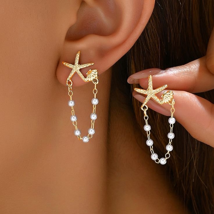 Bring a touch of the ocean to your style with these stunning Starfish & Pearl Chain Dangle Earrings. Featuring a golden starfish design with delicate imitation pearls linked in a chain, these earrings exude coastal charm and elegance. Perfect for beach outings, summer parties, vacations, or casual chic looks, they add a playful yet sophisticated vibe to any outfit. Lightweight and stylish, these earrings are a must-have accessory for women who love seaside-inspired jewelry.