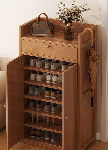 Keep your entryway neat and organized with this elegant wooden shoe storage cabinet. Designed with multiple interior shelves, it provides ample space to neatly store and protect your shoes while keeping them dust-free. The top drawer offers convenient storage for keys, wallets, and small essentials, while the spacious tabletop is perfect for décor items or daily accessories.